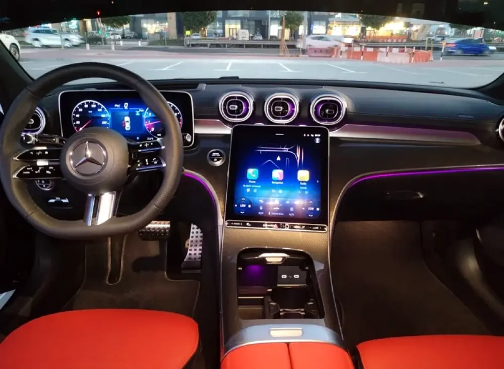 Interior and Features: Inside, the C200 offers a luxurious cabin with premium materials and meticulous craftsmanship. The dashboard features an 11.9-inch touchscreen infotainment system, complemented by a 12.3-inch digital instrument cluster. The vehicle supports Apple CarPlay and Android Auto, ensuring seamless connectivity. Ambient lighting with 64 color options enhances the interior ambiance.