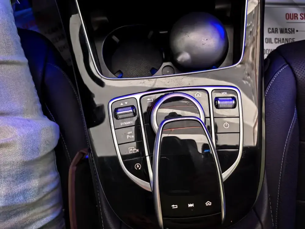 carbon fiber dashboard with lighted colored 3D AC openings.
