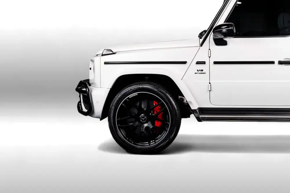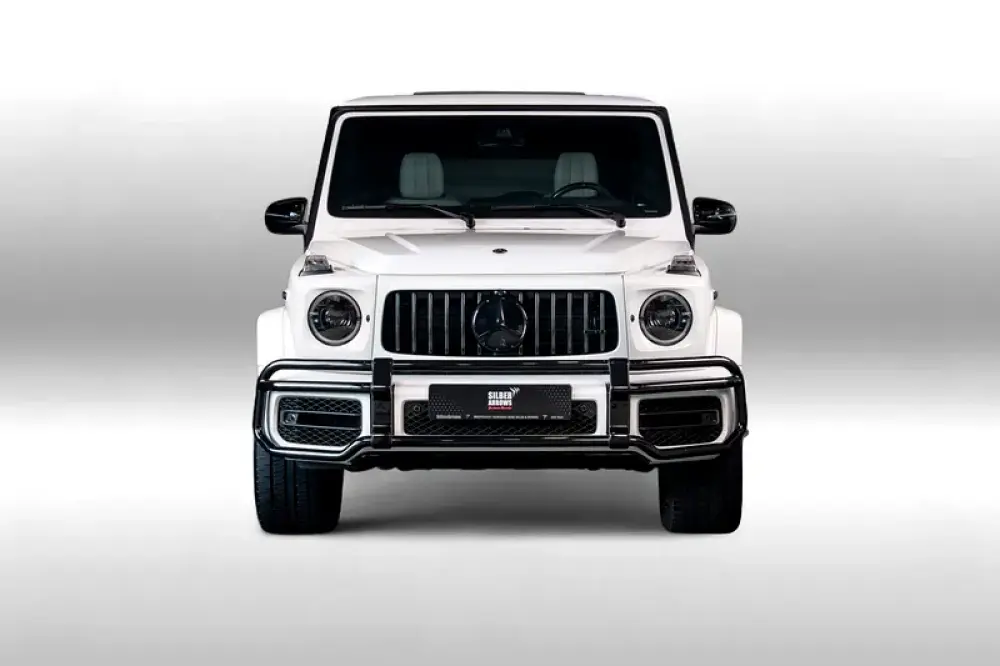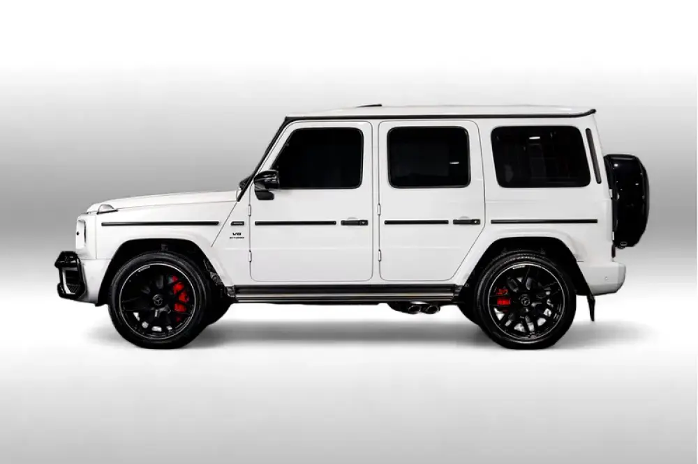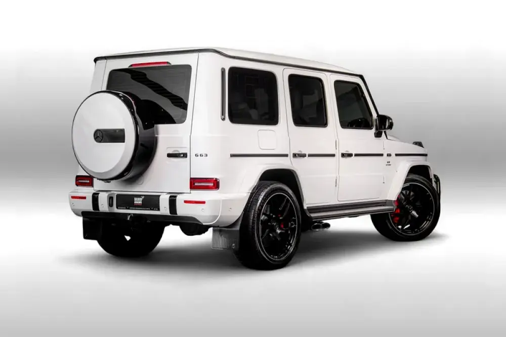 Introducing the 2023 Mercedes-AMG G 63 in a stunning Polar White finish, a masterpiece crafted for those who command attention. With a robust V8 Biturbo engine delivering 577 horsepower and 850 Nm of torque, this iconic off-road vehicle seamlessly combines power and elegance. Its 9G-TRONIC automatic transmission ensures a smooth ride whether navigating urban streets or rugged terrains.