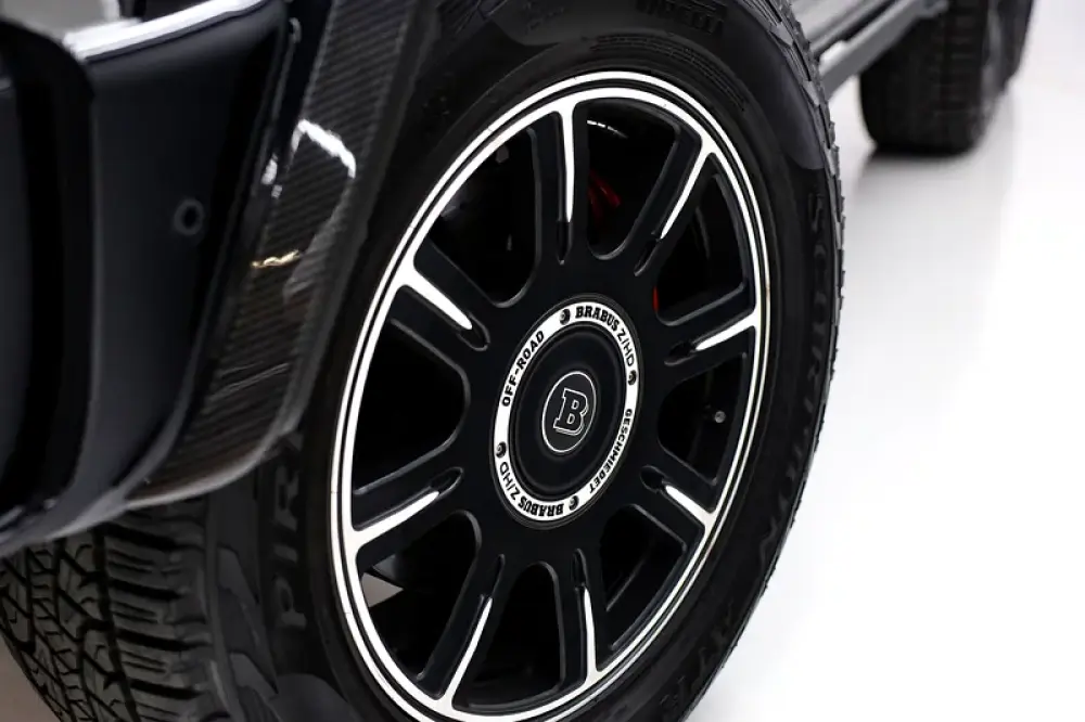 - **Brabus Monoblock HD Wheels:** Forged alloy wheels with all-terrain tires and red Brabus brake calipers.
