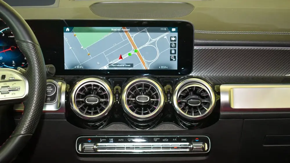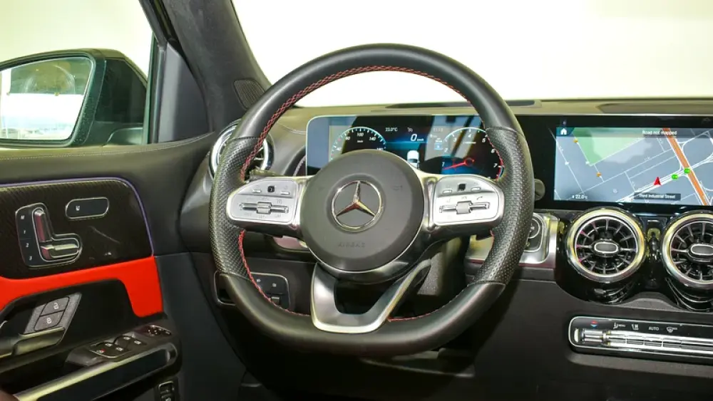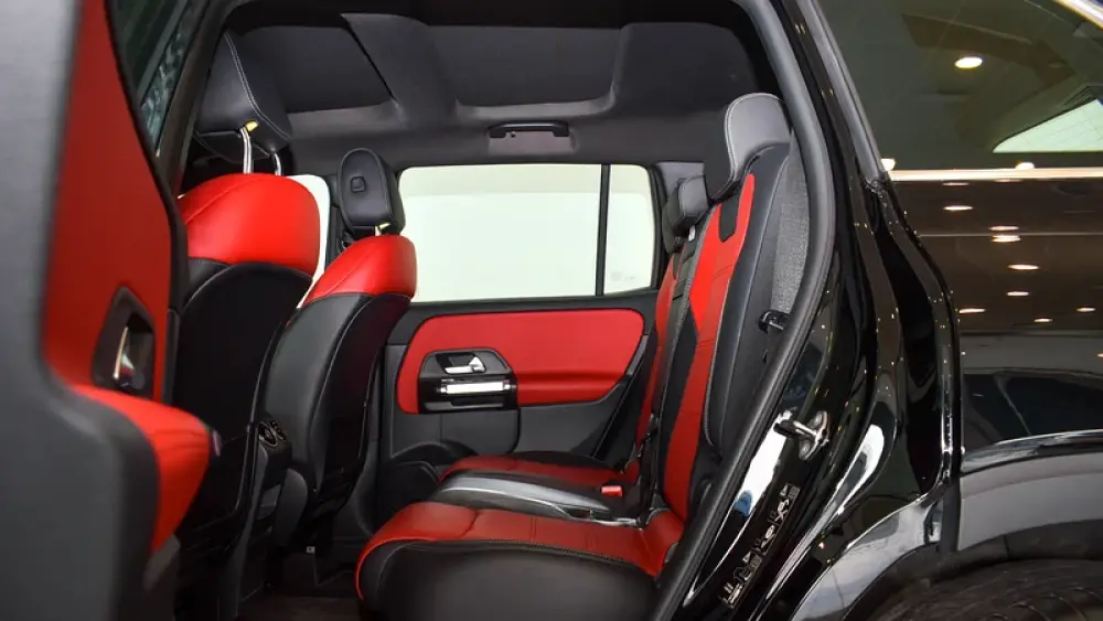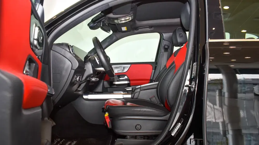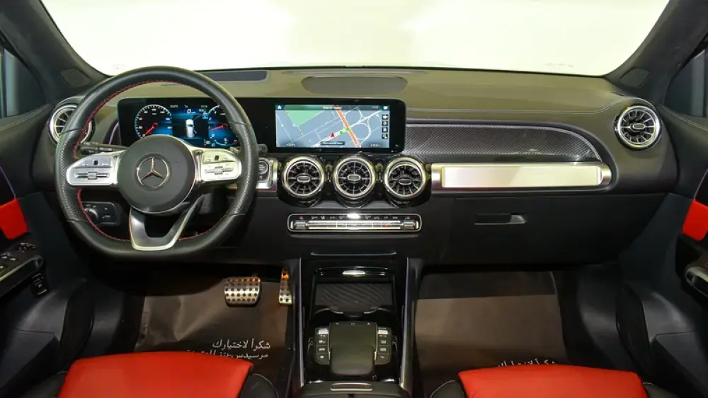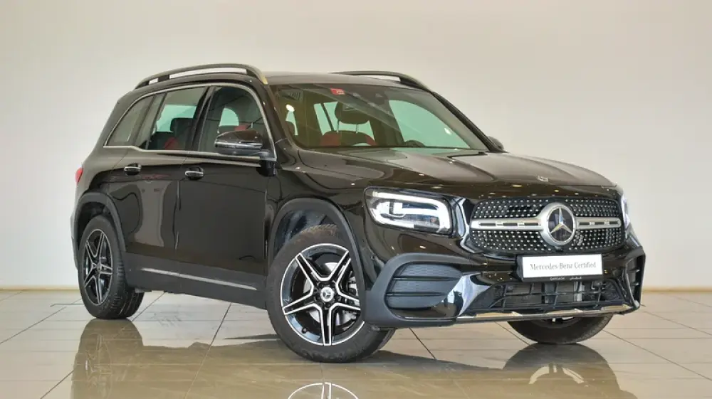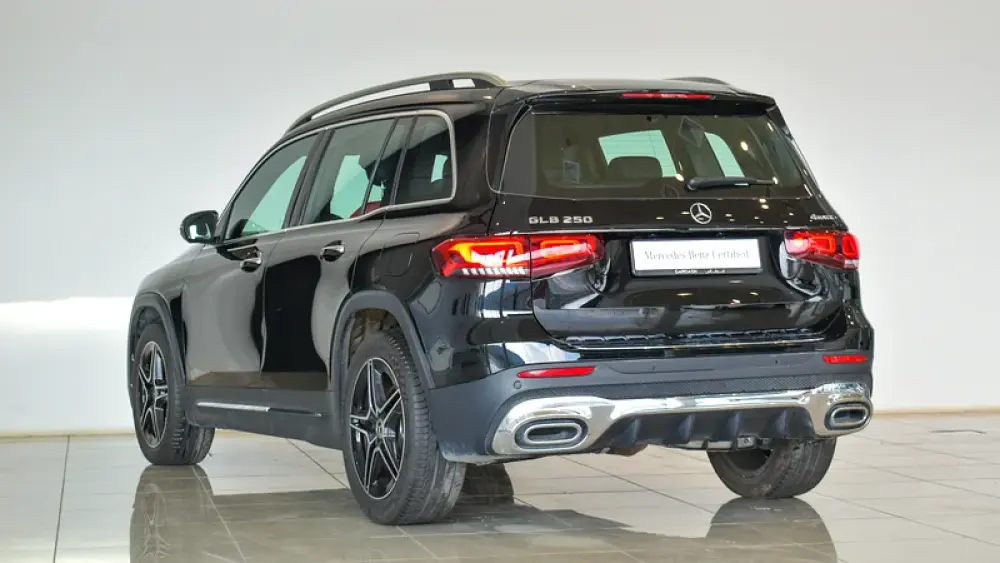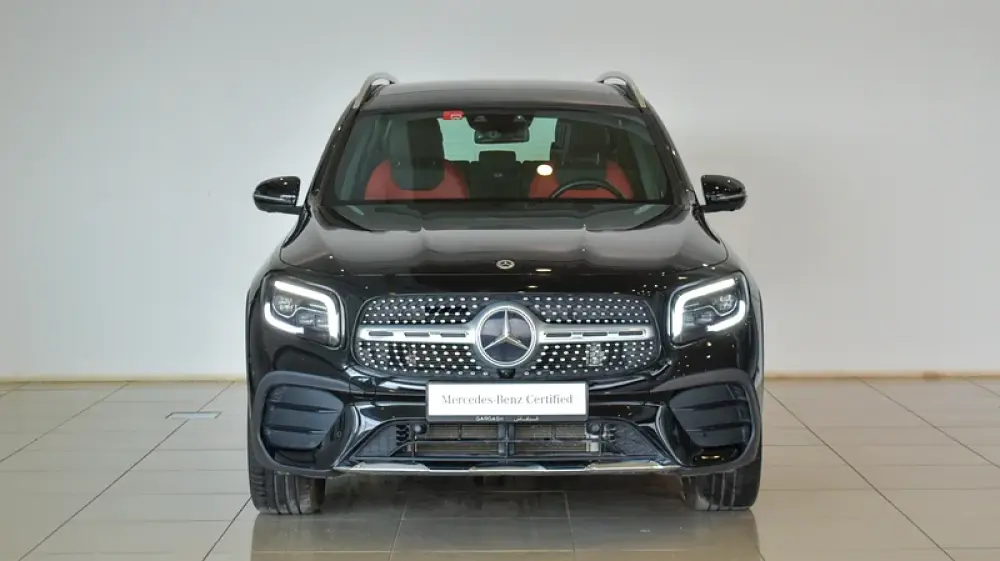 Pre-owned Mercedes-Benz GLB 250 4Matic 7 Seater for sale. Black 2023 model, available at Gargash Enterprises LLC. This car has automatic transmission, 4 cylinders, 19″ wheels and red interior. 28,399 km, GCC specs.