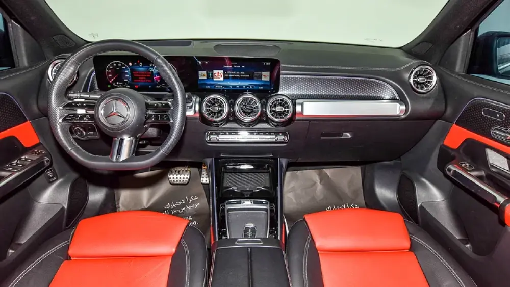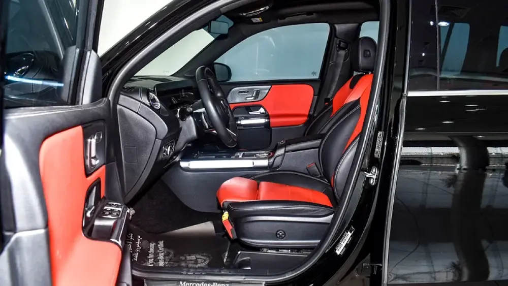 Pre-owned Mercedes-Benz GLB 250 4Matic 7 Seater for sale. Black 2024 model, available at Gargash Enterprises LLC. This car has automatic transmission, 4 cylinders, 19″ wheels and red interior. 24,166 km, GCC specs.