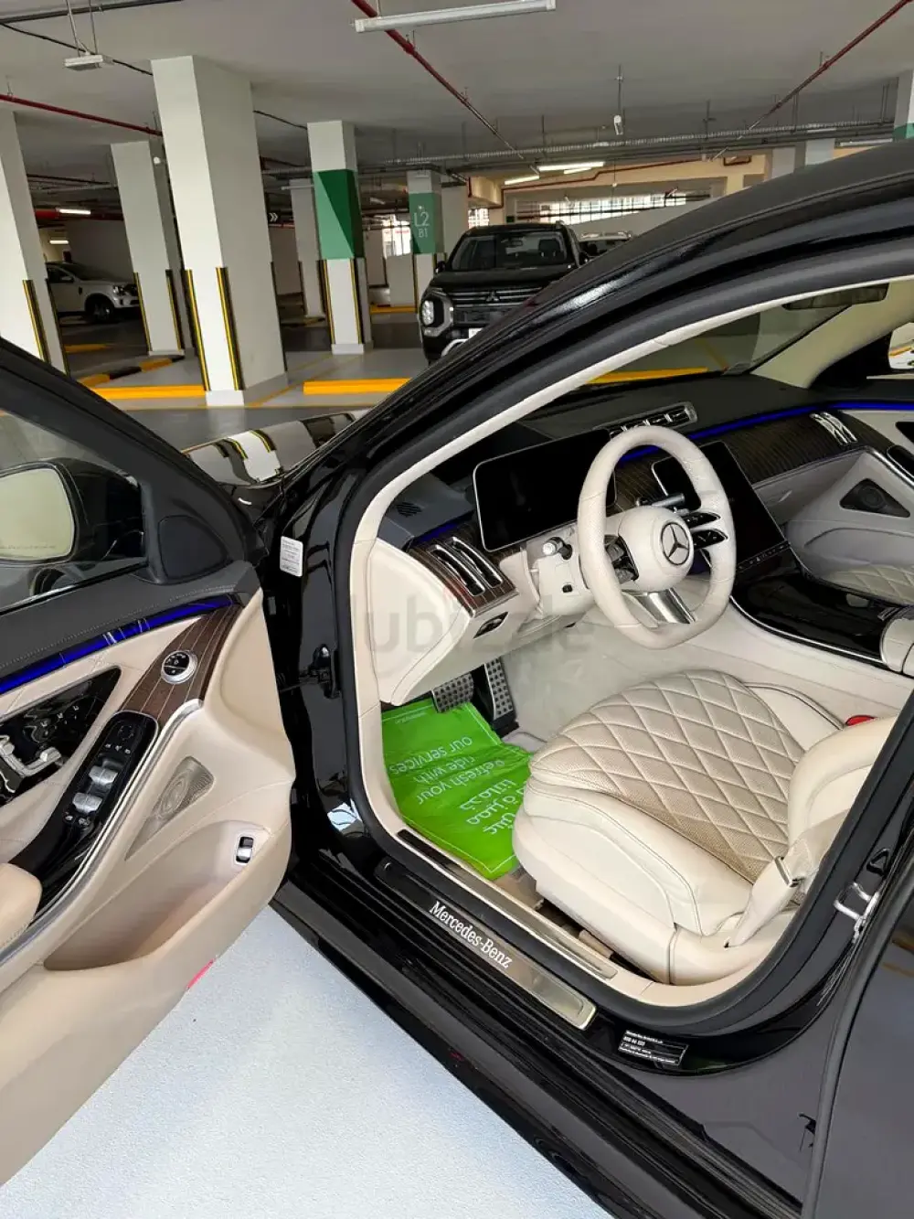 • Diamond-stitched leather interior (cream / beige)