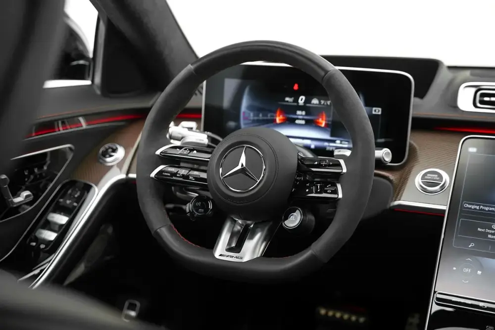 This high-performance plug-in hybrid luxury sedan utilizes a 4.0-liter V8 Biturbo engine paired with a rear-axle electric motor and a high-performance battery to deliver a combined system output of 791 HP. Power is managed by an AMG SPEEDSHIFT MCT 9-speed transmission and a fully variable all-wheel-drive system (AMG Performance 4MATIC+), enabling rapid acceleration and superior traction. The vehicle features AMG RIDE CONTROL+ adaptive suspension and active rear-axle steering for enhanced driving dynamics.