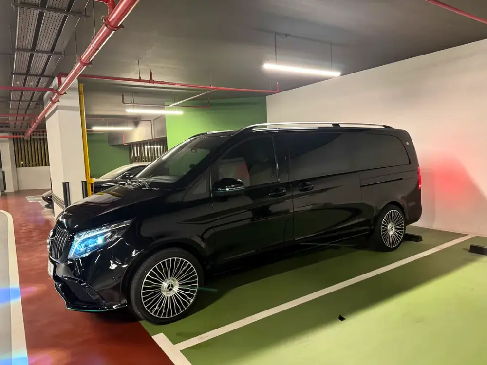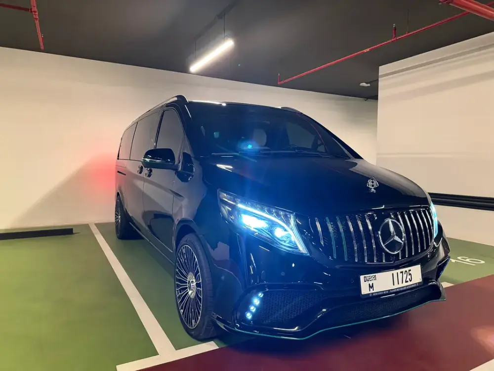 The exterior immediately captivates with a full Maybach body kit and signature Maybach alloy wheels, creating an imposing and elegant presence on the road. The customization elevates the V-Class from a luxury people mover to a vehicle that rivals the most exclusive sedans in terms of sheer curb appeal.