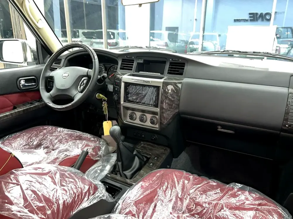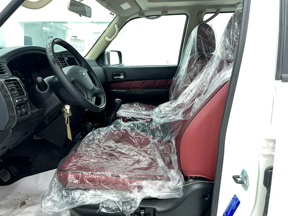 نيسان سوبر سفاري 2024 الاسطورة ابيض من الداخل احمر قير عادي ضمان الوكالة