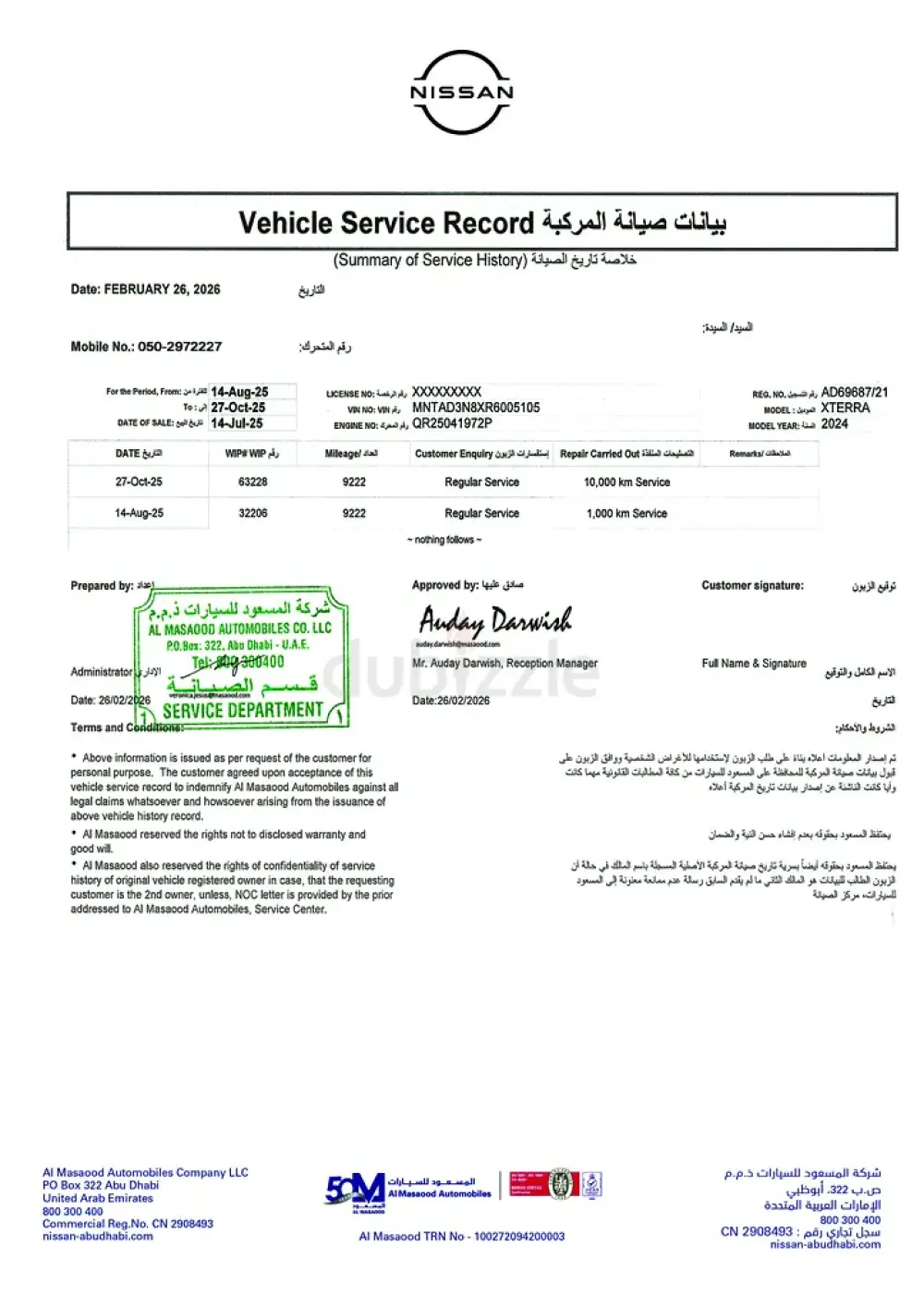 • Model: Nissan Xterra Platinum (Full Option, Under Warranty)