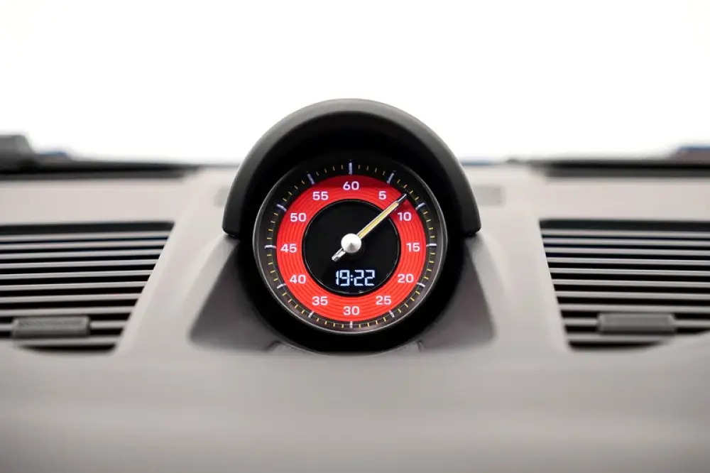 Rev counter in Guards Red