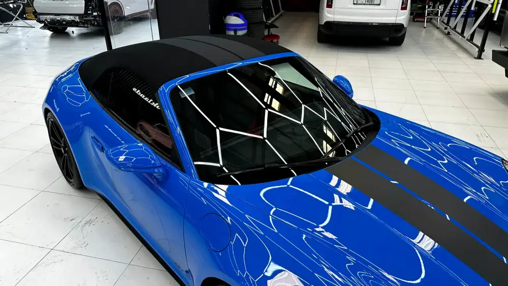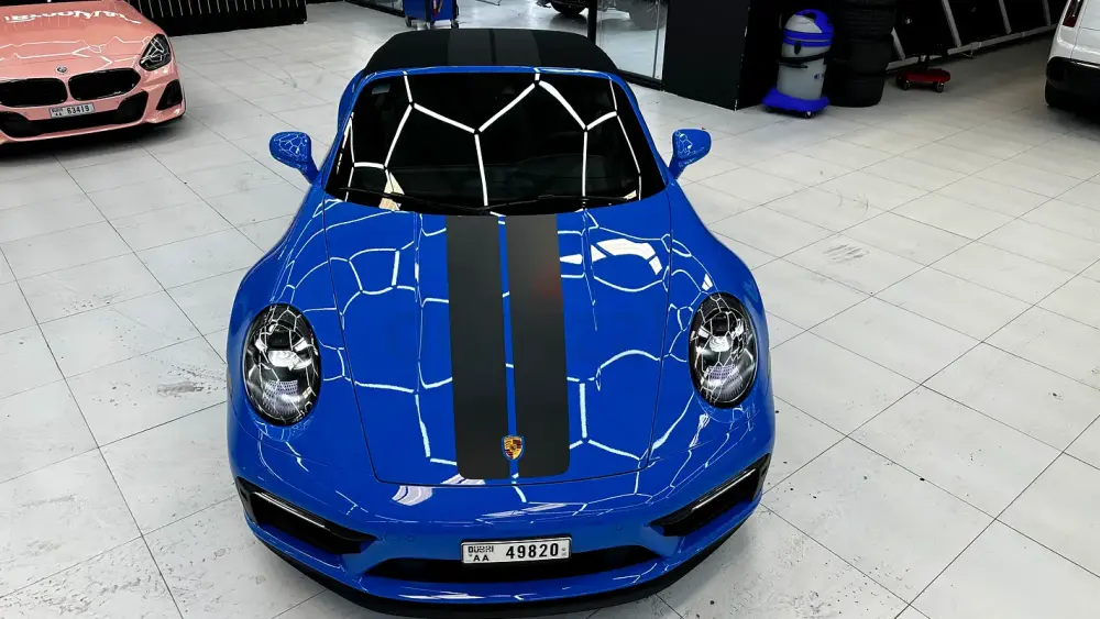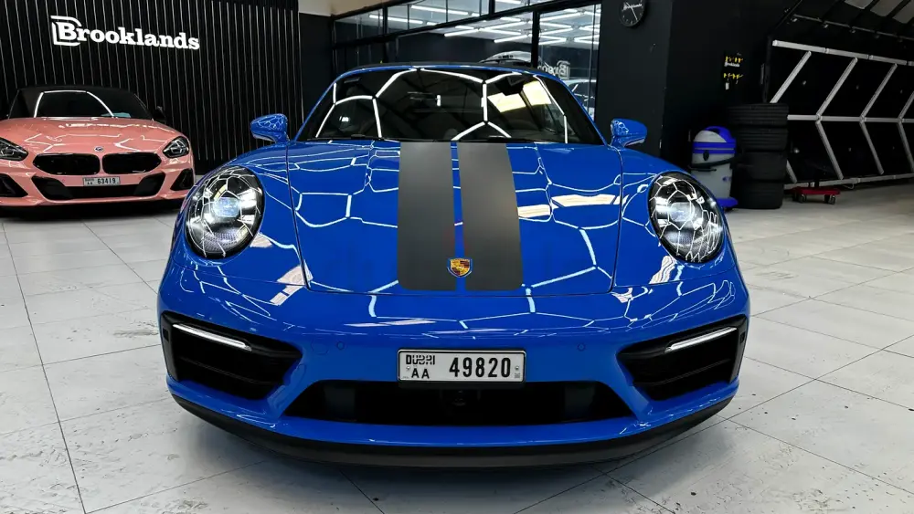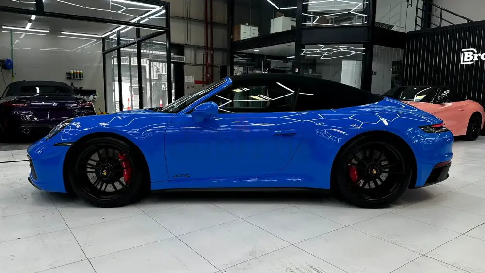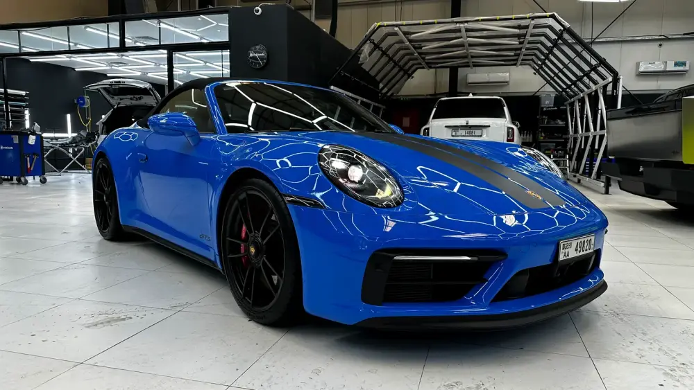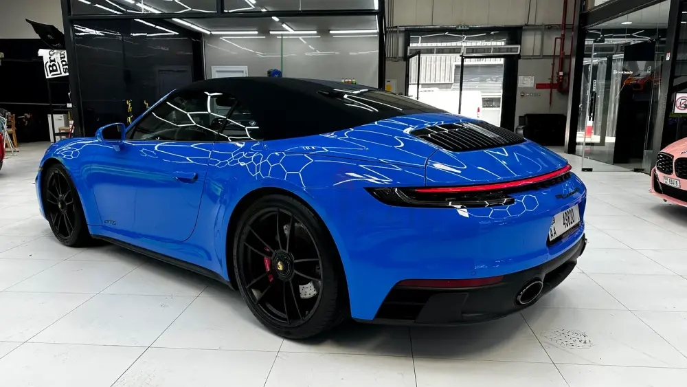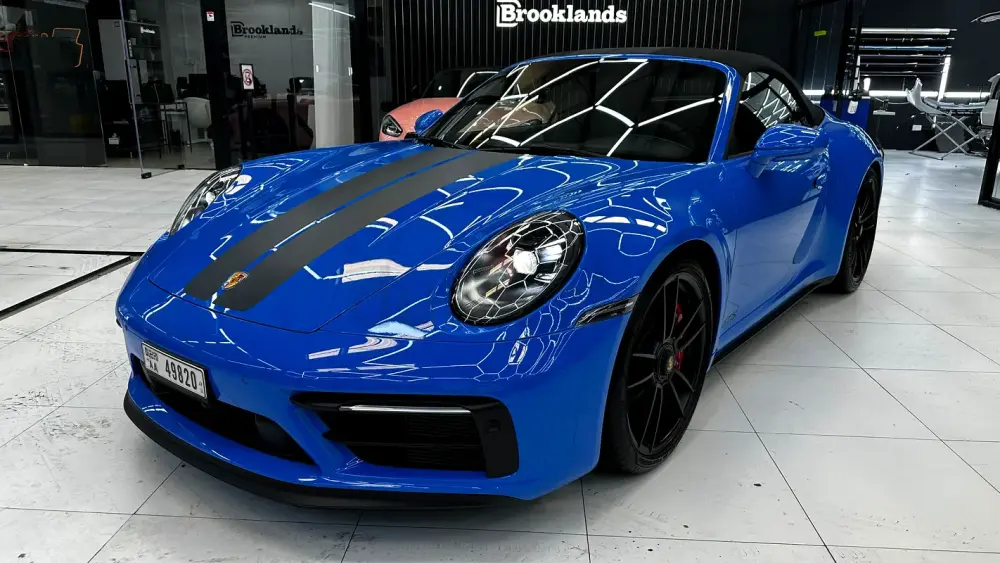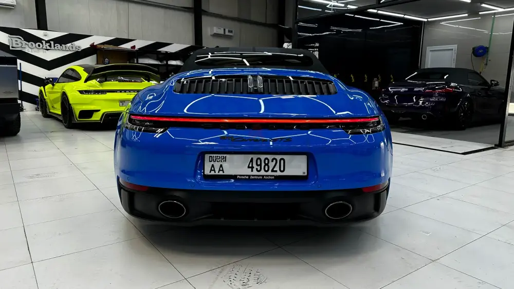 A perfect blend of performance, open-top driving, and timeless 911 design — in stunning Shark Blue with a GTS black interior.
