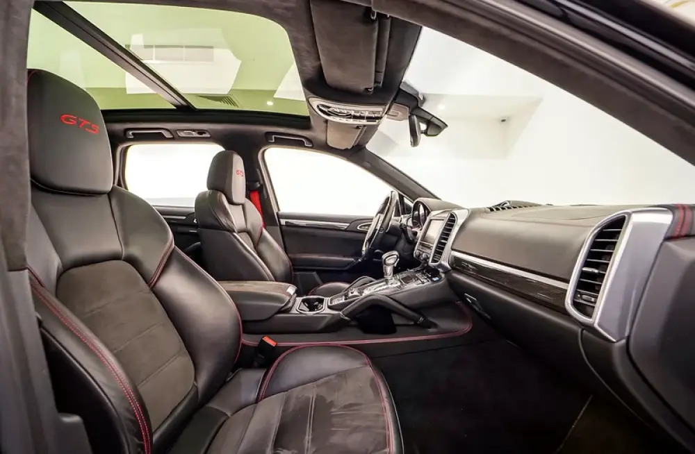 - Alcantara seats with GTS red stitching