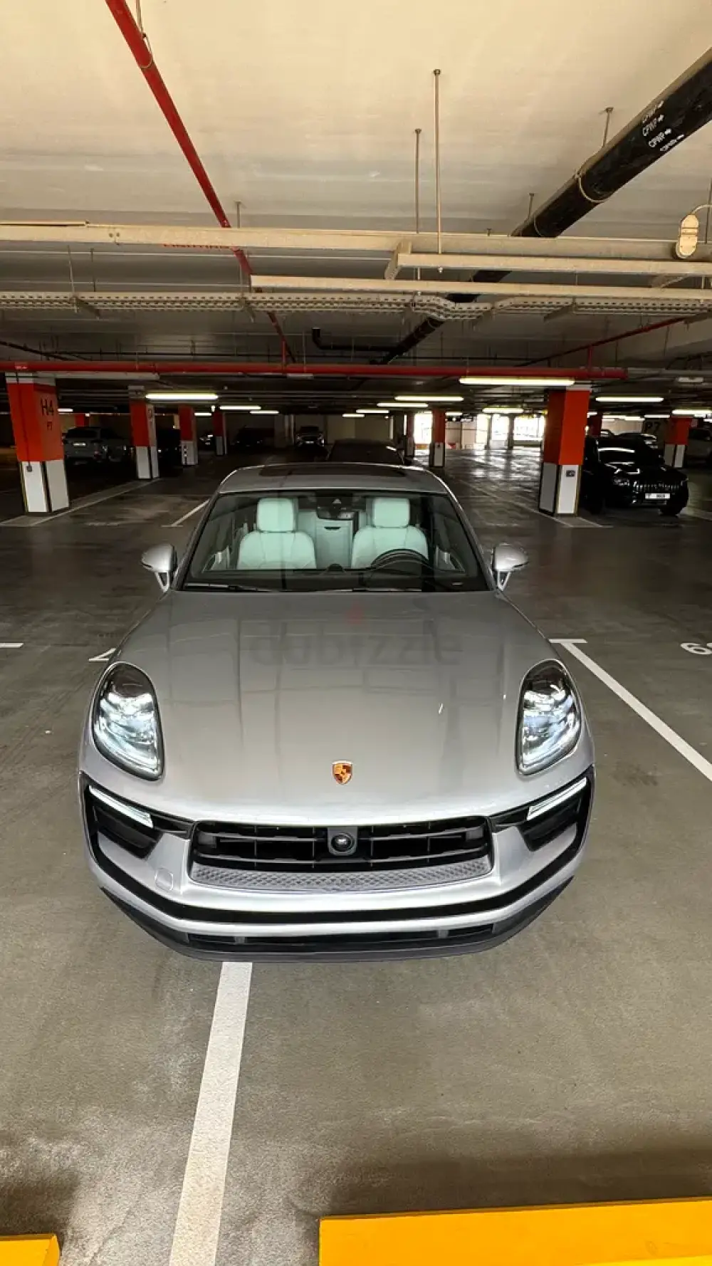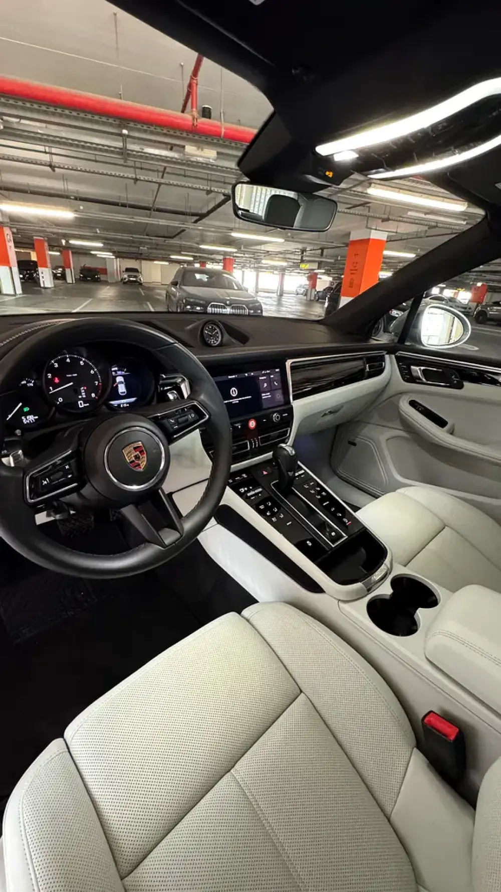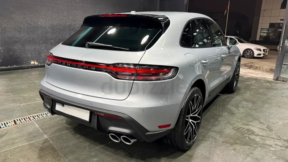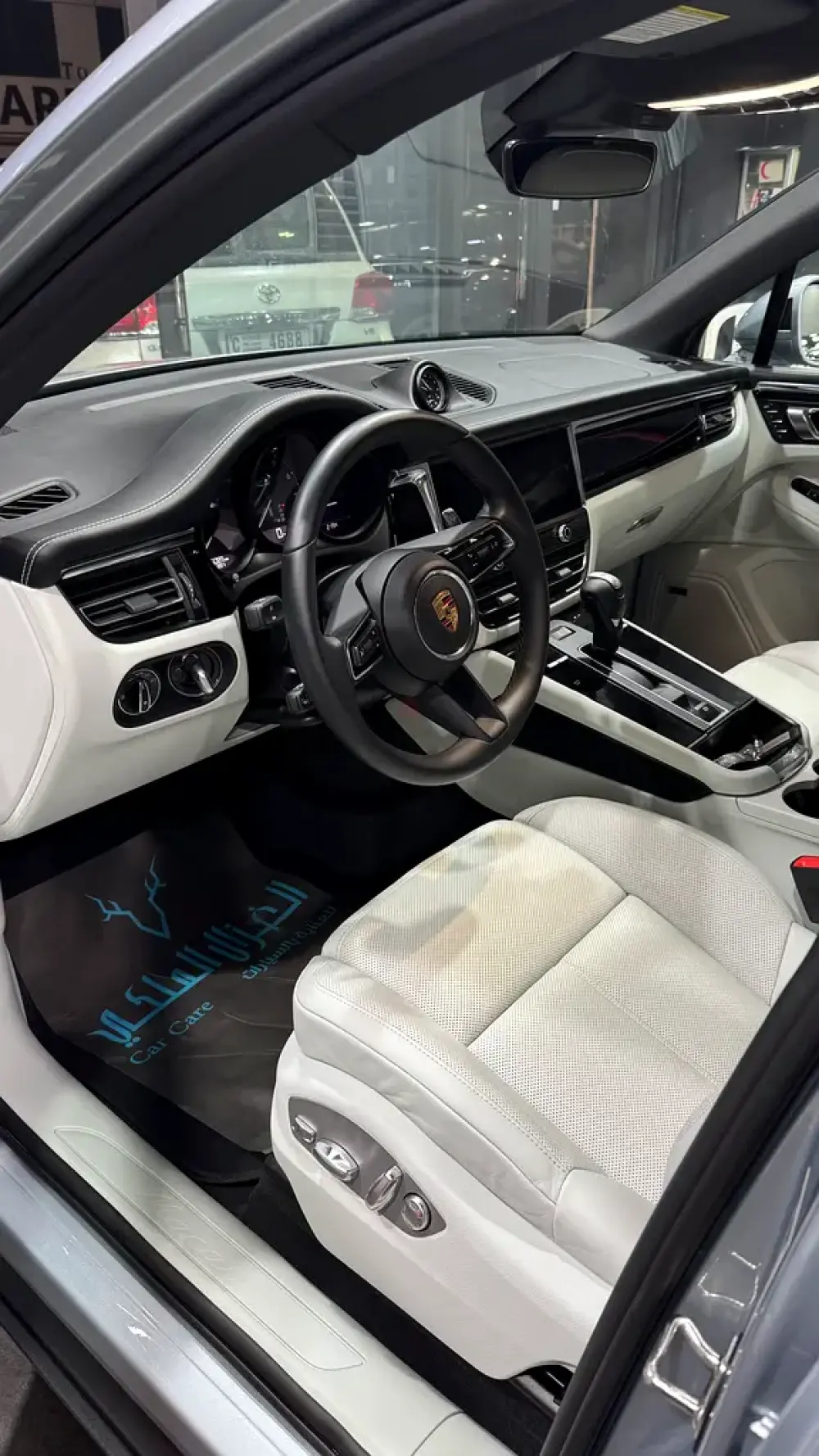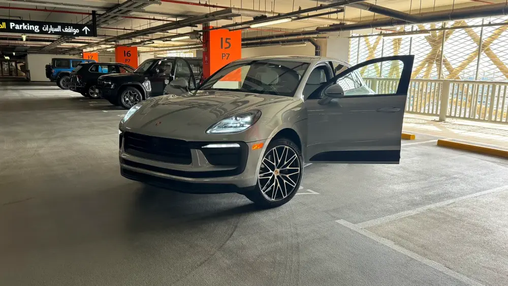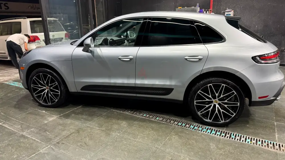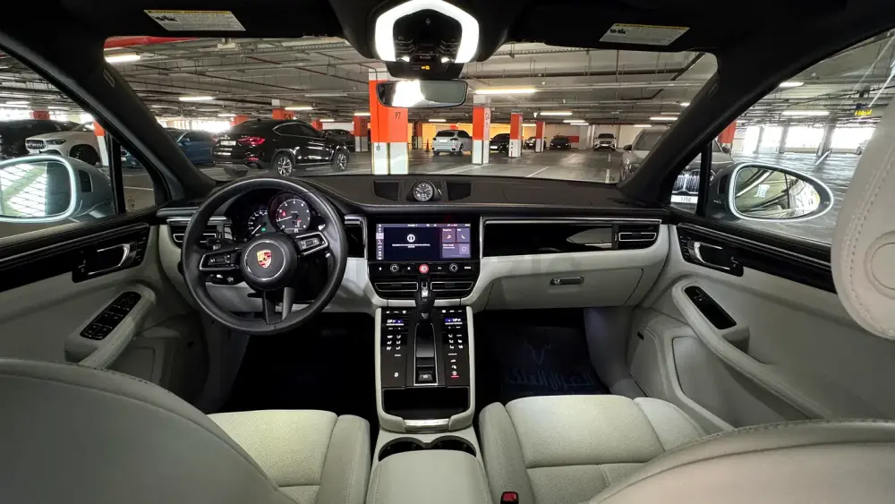 Porsche Macan, featuring an amazing and rare color combination with a sleek grayish exterior paired with a stunning white interior, giving it a truly premium and elegant look