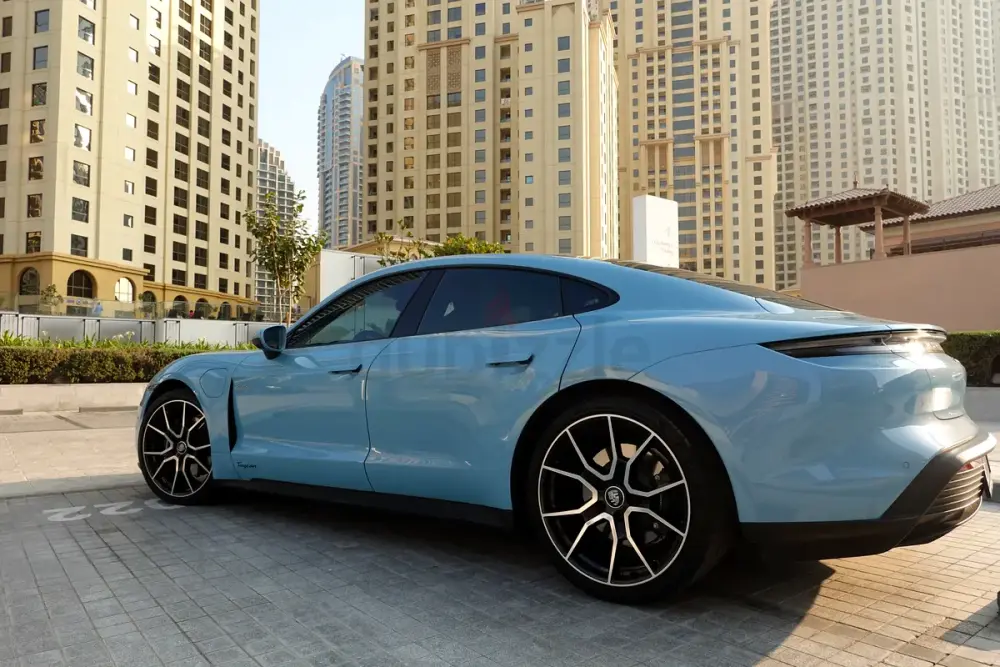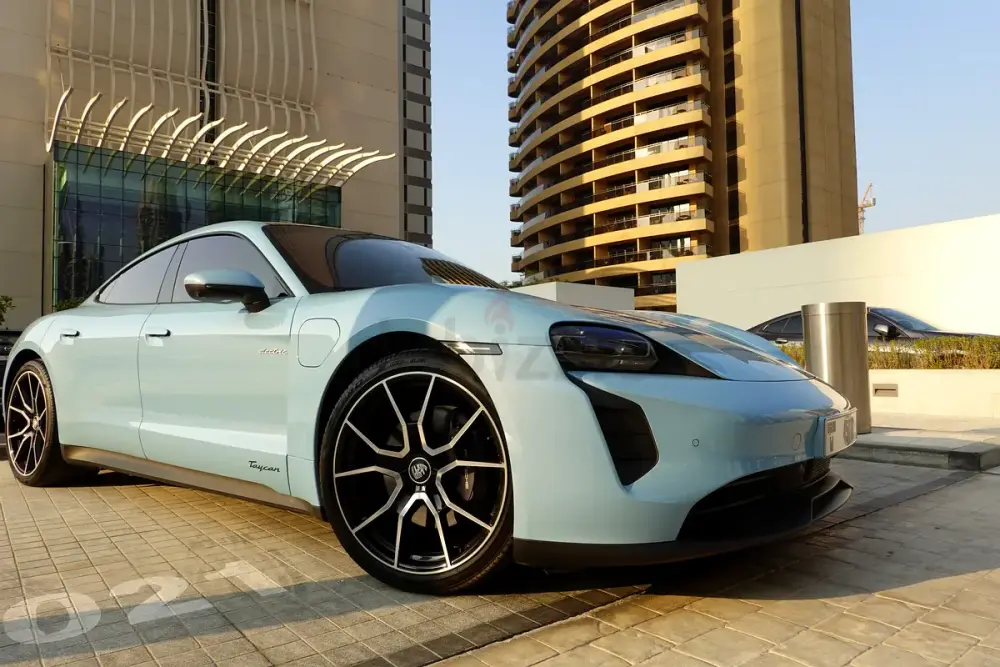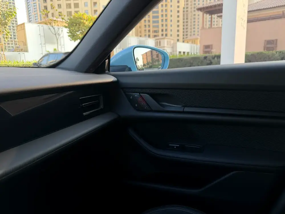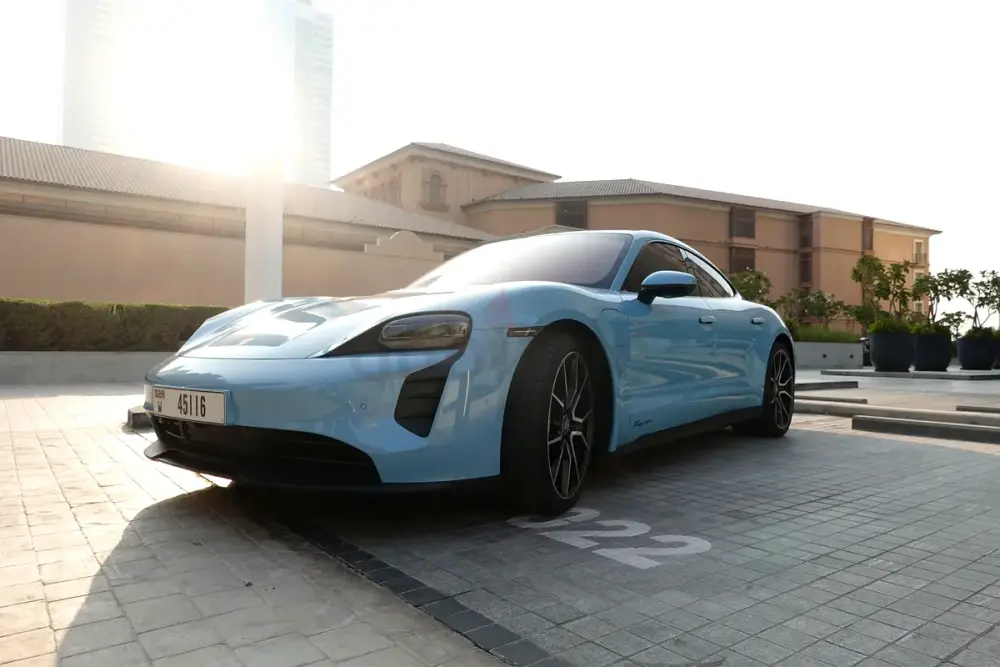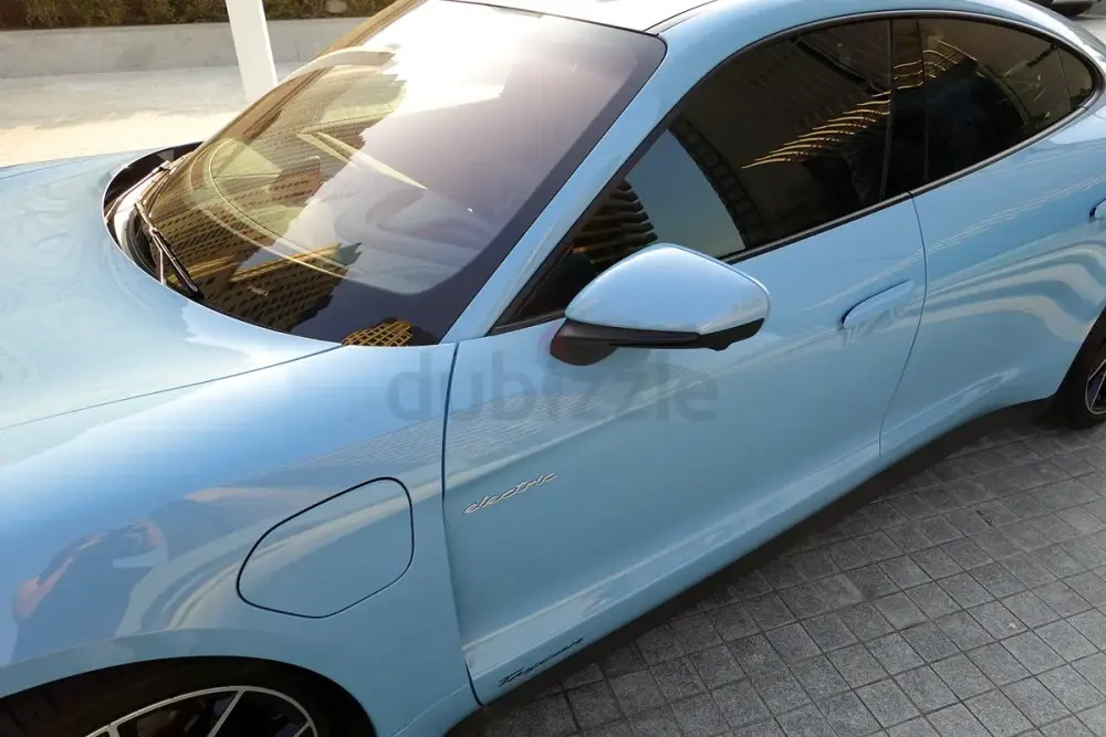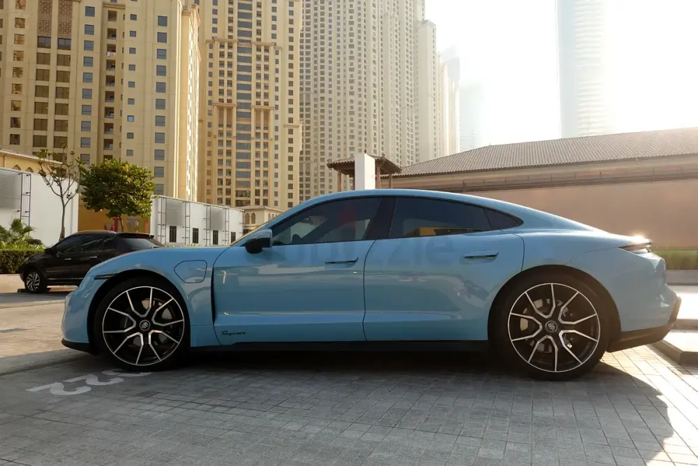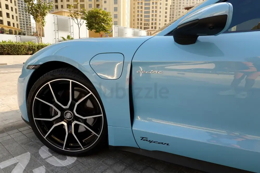 Rare specification in Frozen Blue Metallic with premium options including Panoramic Roof, 21” RS Spyder Wheels, Performance Battery Plus, and BOSE® Sound