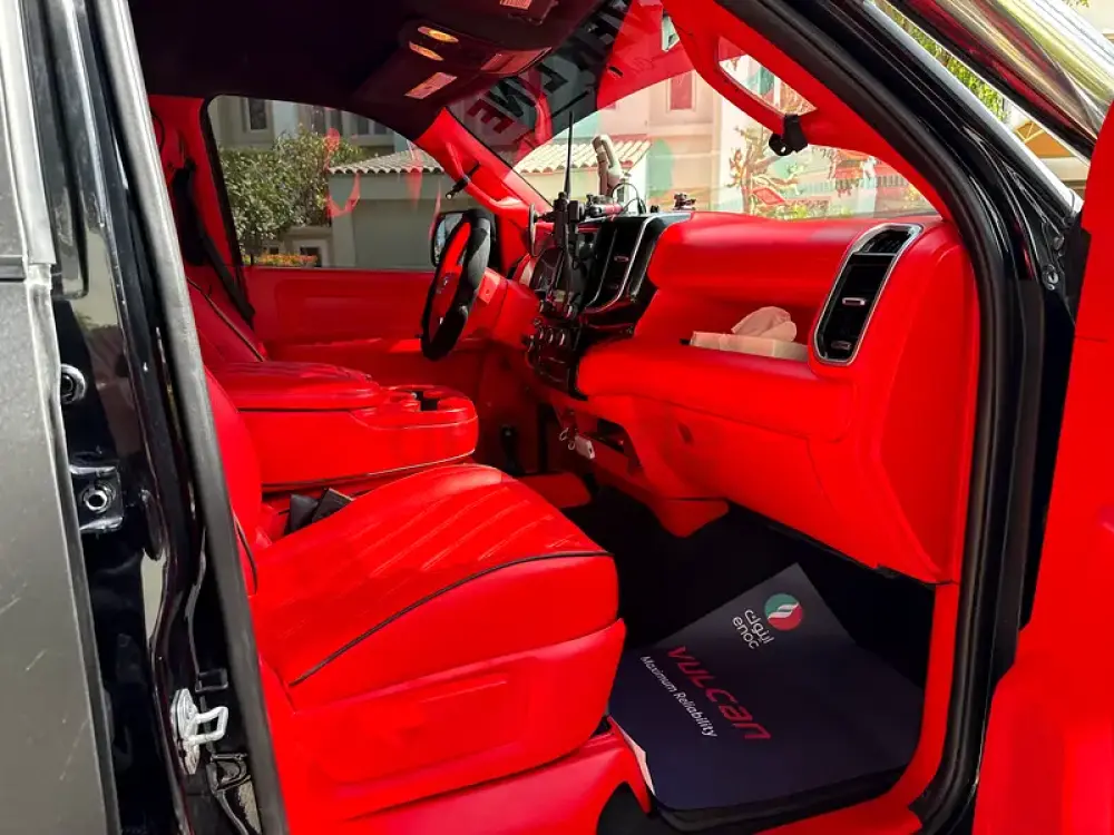 2) custom red leather interior