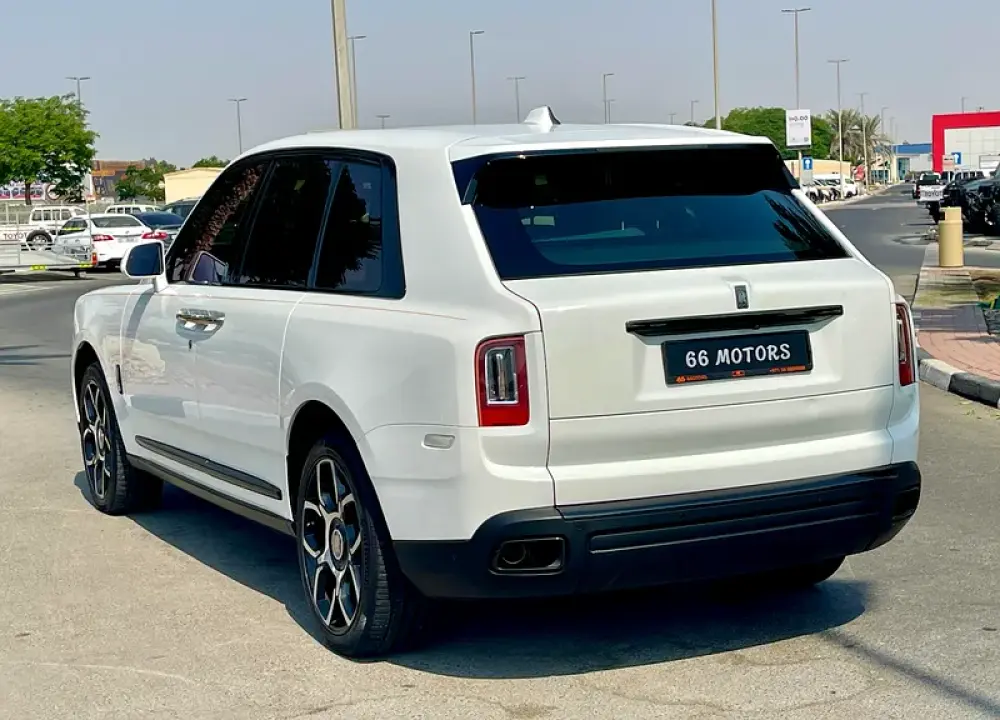 The 2021 Rolls-Royce Cullinan Black Badge for European specification features a more powerful 6.75L twin-turbo V12 engine producing 600PS and 900Nm of torque, with a bespoke throttle and transmission tuning for more dynamic performance. It has a distinct, blacked-out exterior, including the Spirit of Ecstasy and other chrome elements. Inside, expect a customizable and luxurious cabin with options like a Black and Orange interior, carbon fiber trim, and bespoke audio, along with a panoramic sunroof and unique interior options.