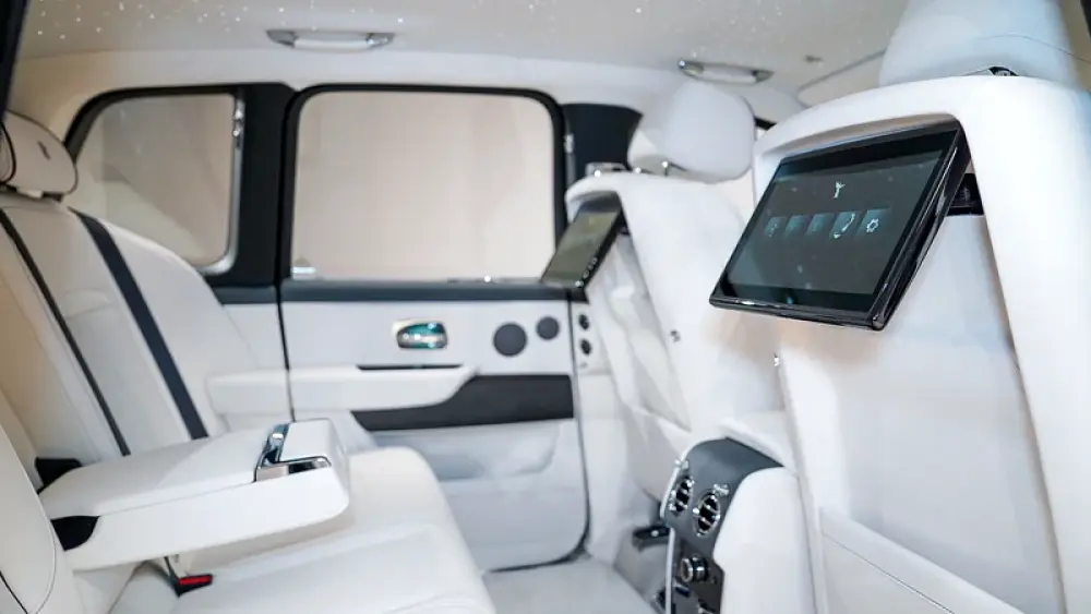 Inside, the 5-seat configuration offers unmatched comfort and versatility. Rear passengers enjoy entertainment screens, surrounded by handcrafted materials and ambient luxury. Above, the Shooting Star headliner transforms the cabin into a celestial haven—perfect for those who expect nothing less than the extraordinary.