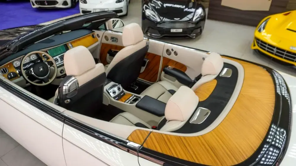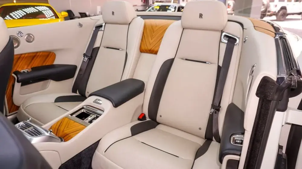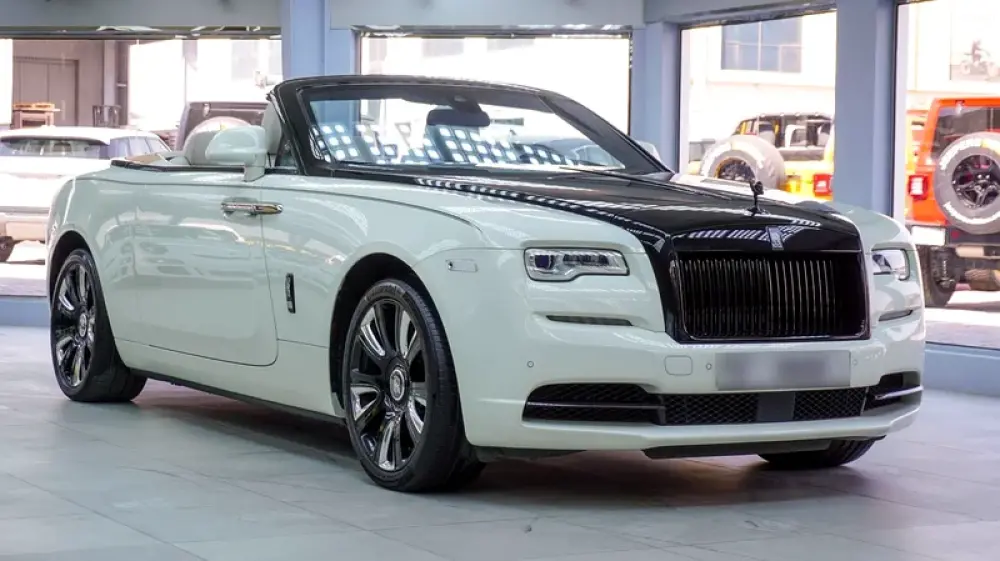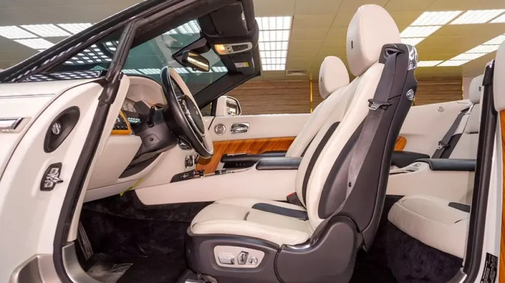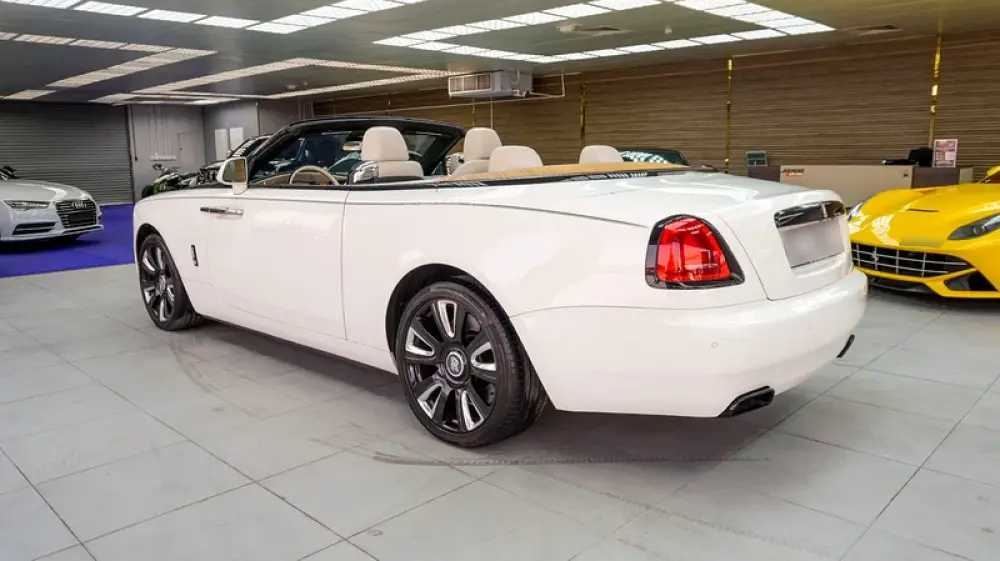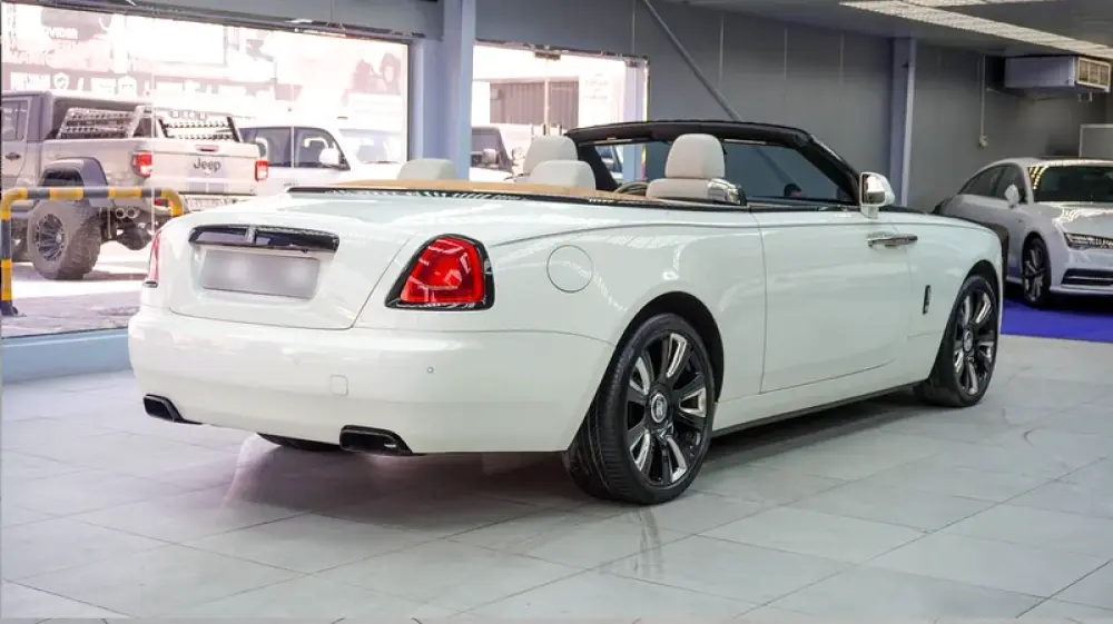 Used Rolls-Royce Dawn for sale in Dubai. White 2017 model, available at Jeepers Auto This car has automatic transmission, a 12 cylinder engine, 20″ wheels and beige interior. 62,716 km, GCC specs.