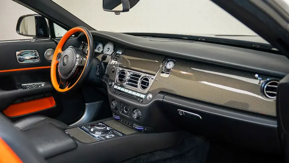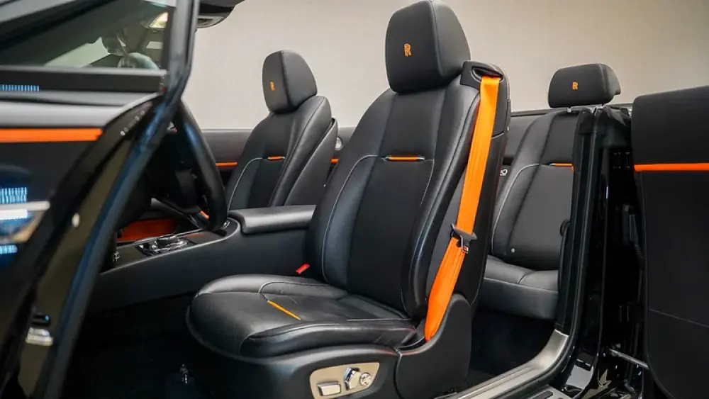 The interior is equally captivating—Black leather with Mandarin accents, Carbon fibre trim and the immersive Bespoke Audio system designed specifically for the Dawn’s open-top experience.
