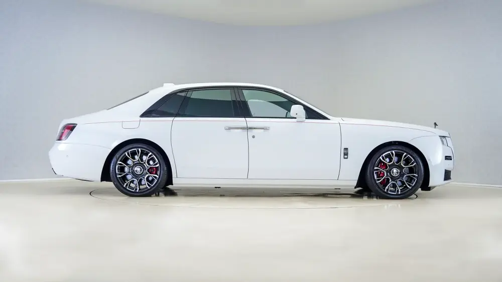 Powerful, purposeful, and unmistakably bold—this 2022 Rolls-Royce Ghost Black Badge embodies the darker, more dynamic side of Rolls-Royce. Finished in Arctic White over an arresting Marinello Red leather interior, this Japan-spec example showcases the unique character that defines the Black Badge series.