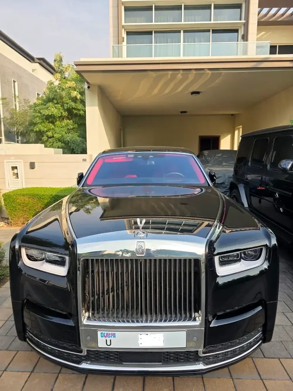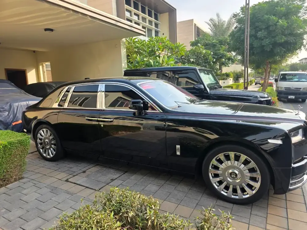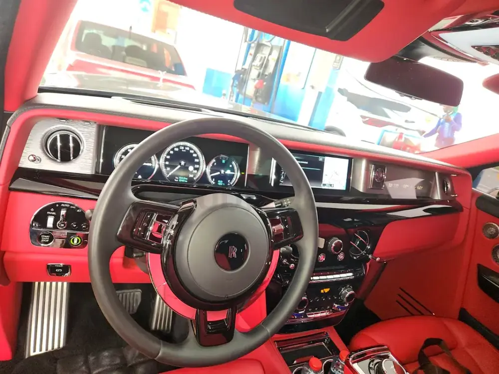 Only 7,800 km. Elegant black exterior with luxury red leather interior. V12 engine. Includes two original keys, Rolls-Royce umbrellas, rear luxury pillows, and wine glass.