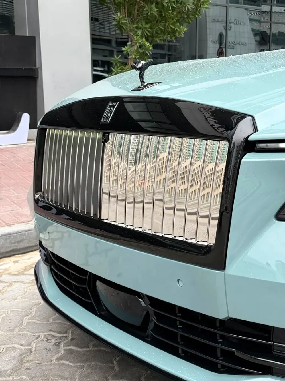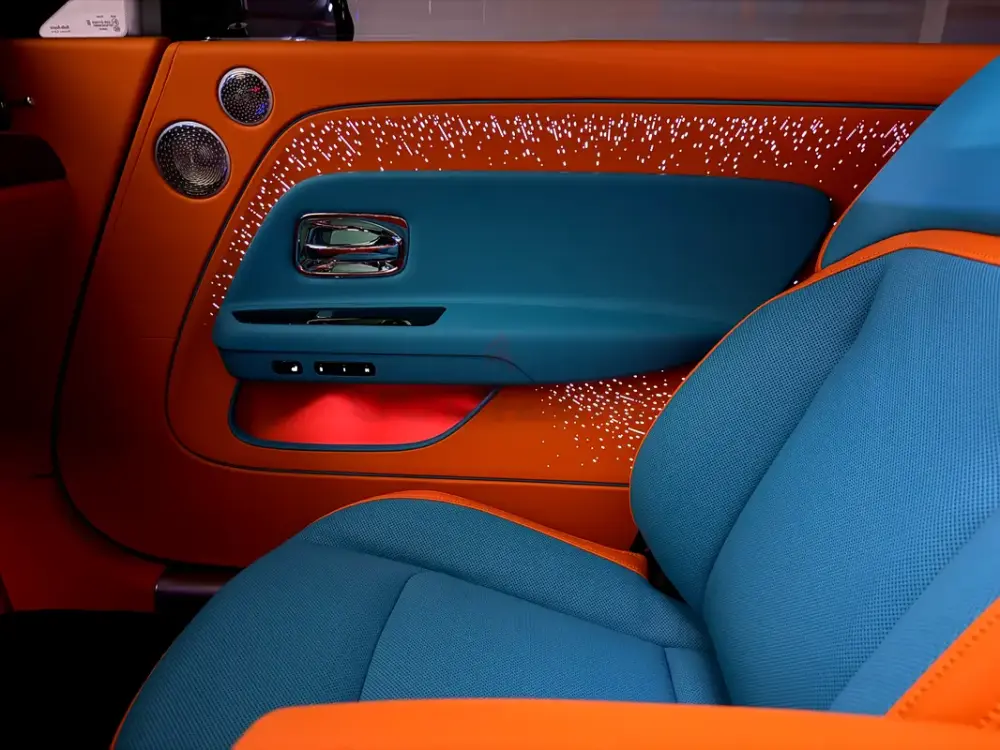 This Spectre combines the bold presence of the Black Badge edition with an exclusive orange exterior paired with a stunning Tiffany interior, creating a striking contrast and an ultra-luxurious atmosphere inside the cabin.