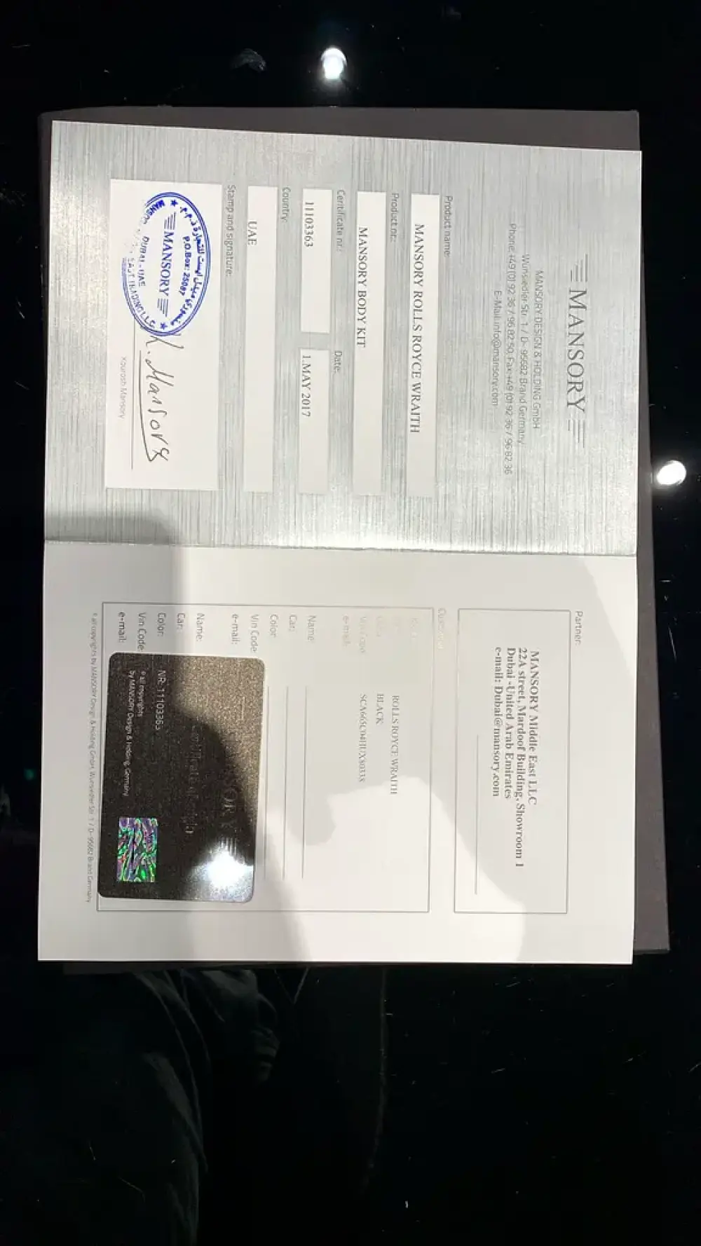 Mansory Certificate Available