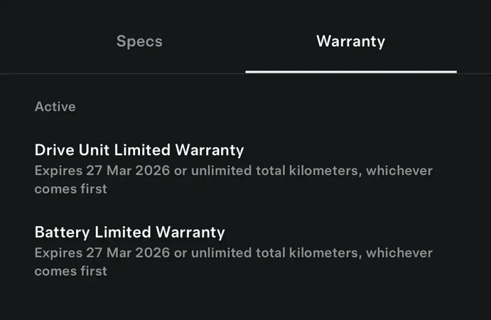 UUNDER TESLA WARRANT TILL 27 MAR 2026 OR UNLIMITED KILOMETERS