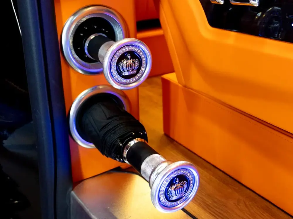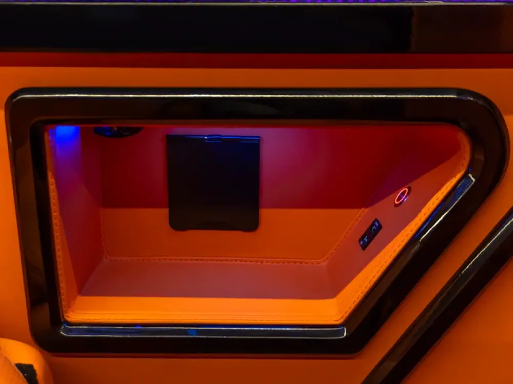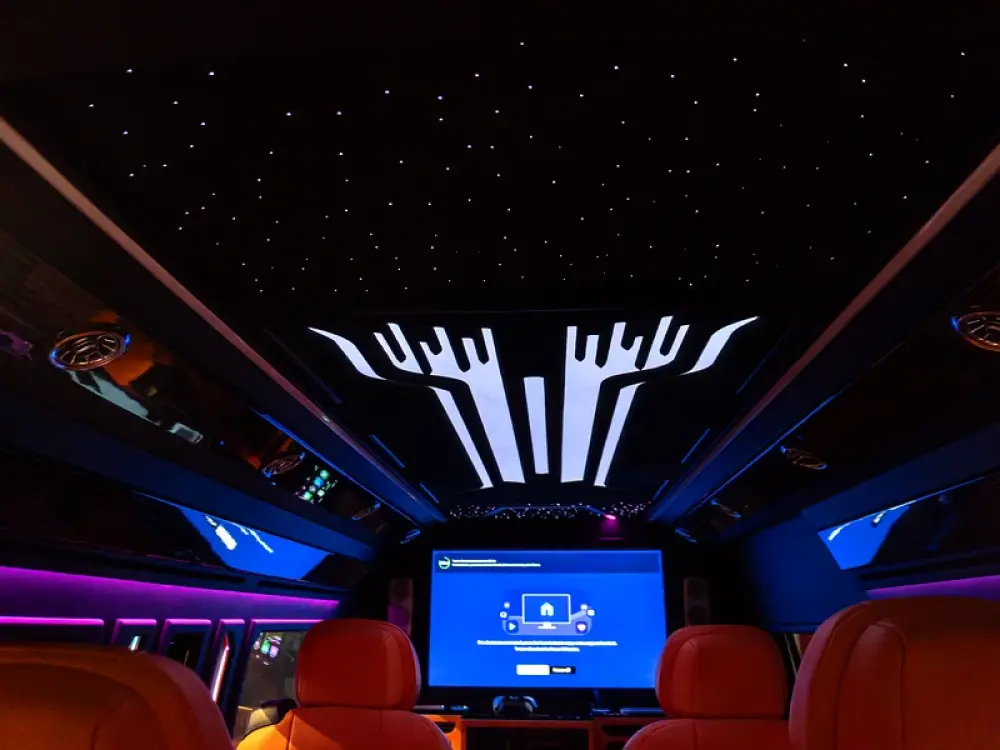 - Custom Alcantara ceiling with starlight, shooting stars & ambient warm lights
