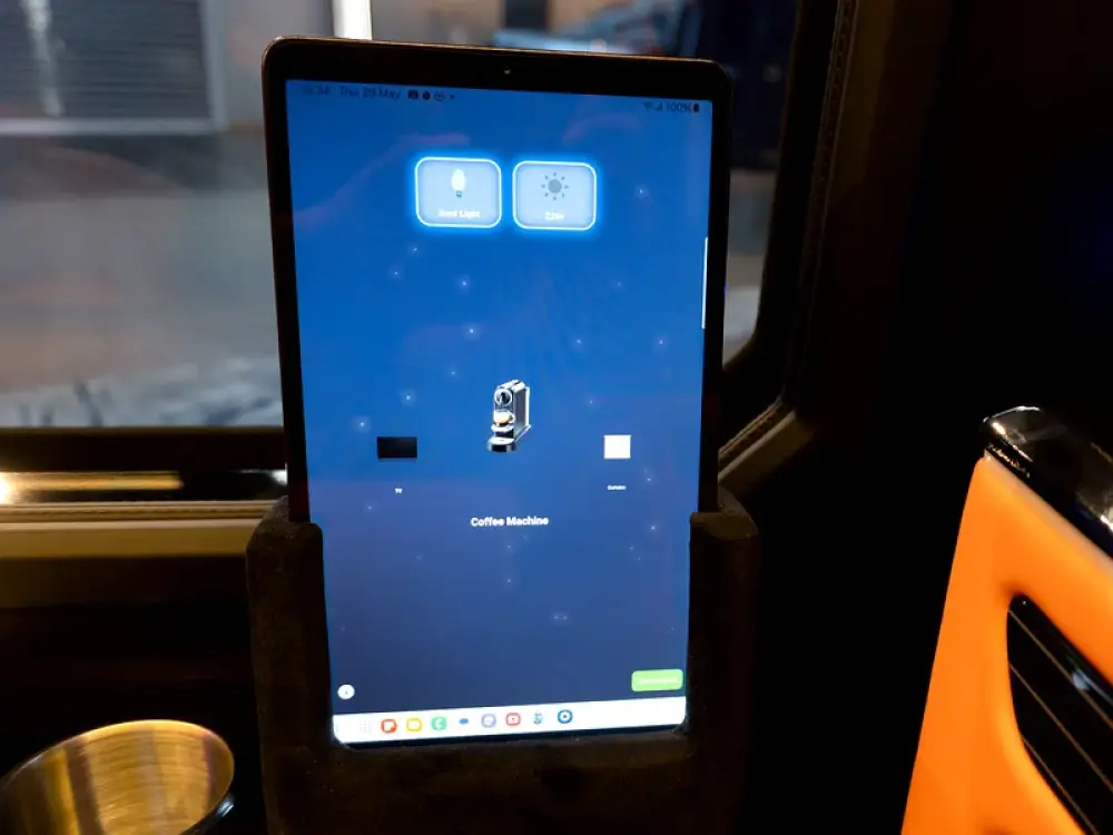 - Driver-passenger separator with 43” Samsung Smart TV