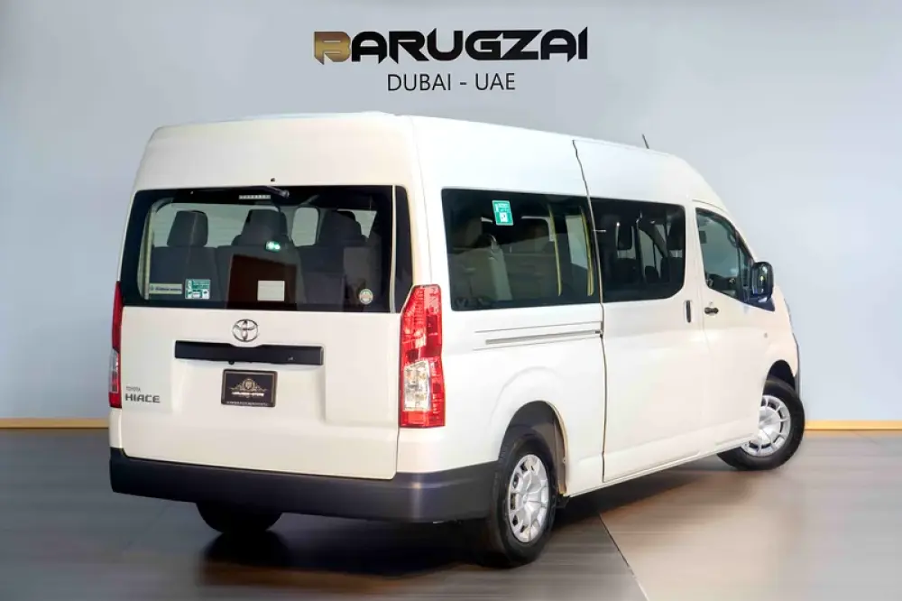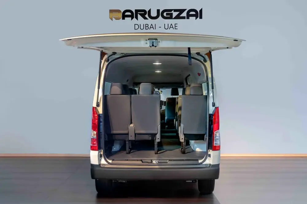 The Toyota Hiace Commuter 3.5L Petrol is a trusted choice for passenger transport in the UAE, offering a spacious high-roof interior, seating for 13, and a robust build known for reliability. Equipped with manual or automatic transmission options, it combines strong performance with comfort, making it ideal for business, tourism, and shuttle services.